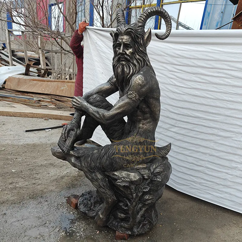 This sculpture, which is a faun, is produced by our factory, and we can customize various sculptures for our customers. Realistic wool, sheep's hooves and horns plus human figures make up this ancient Greek sculpture.