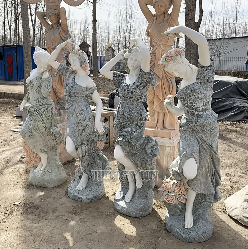 3. Technique: The marble female statues stone woman sculpture four season statues are 100% hand carved. Natural white marble and green veins make your garden statue unique in the world.
