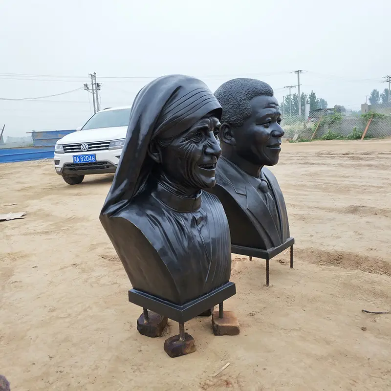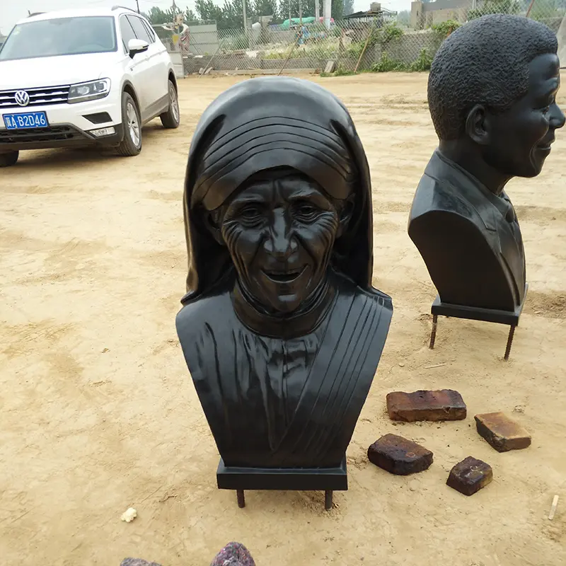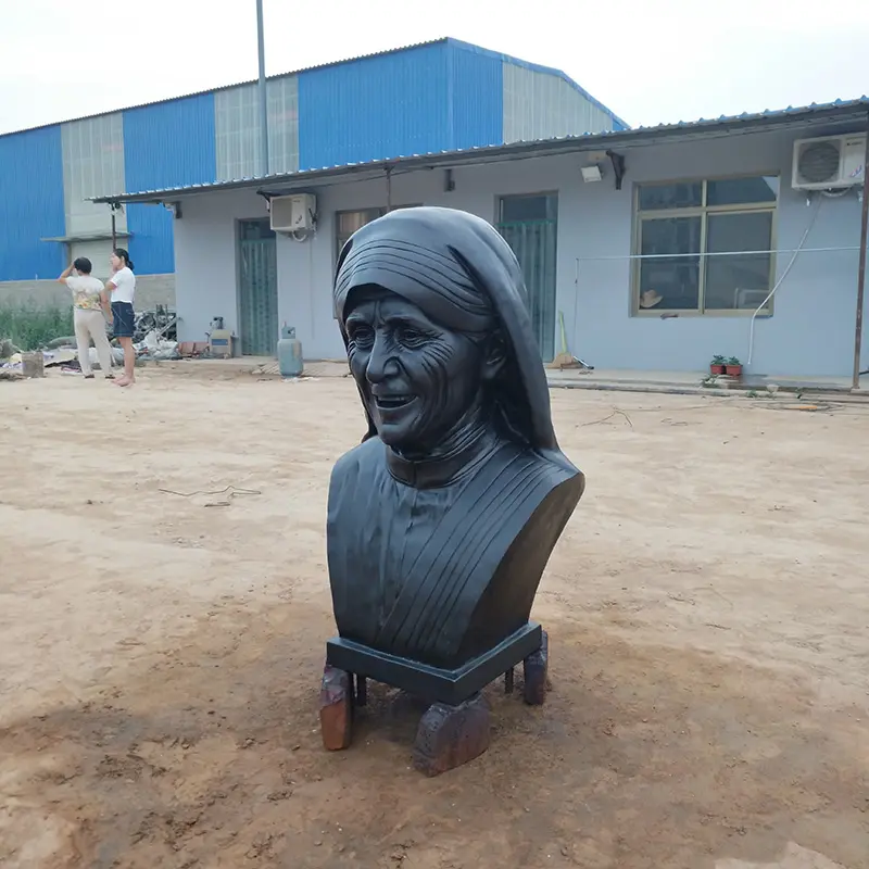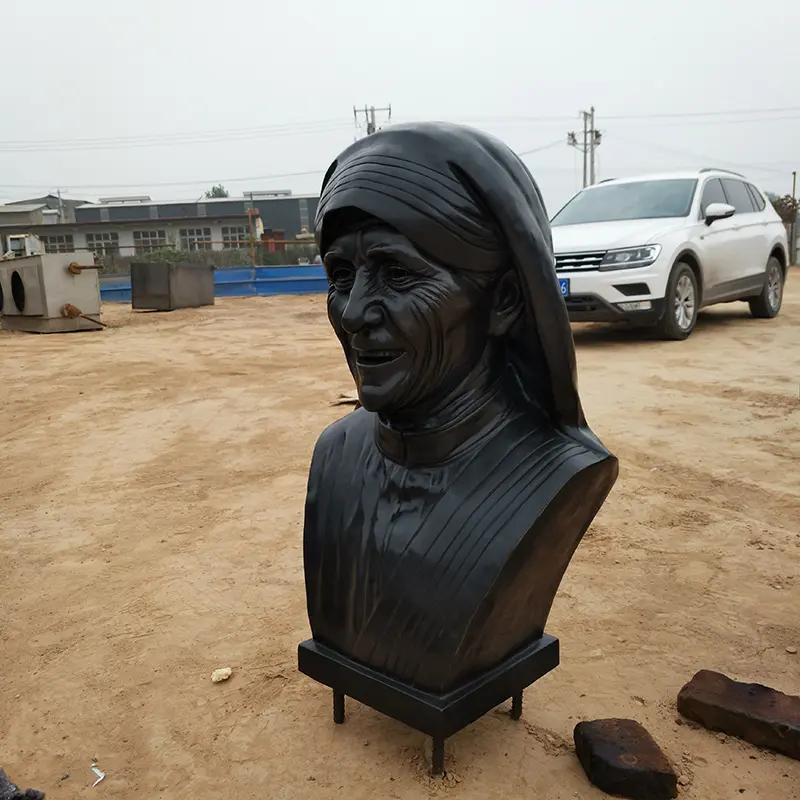The bronze bust is for Mother Teresa of Calcutta, the Catholic nun and saint. It is a real human bust statue.