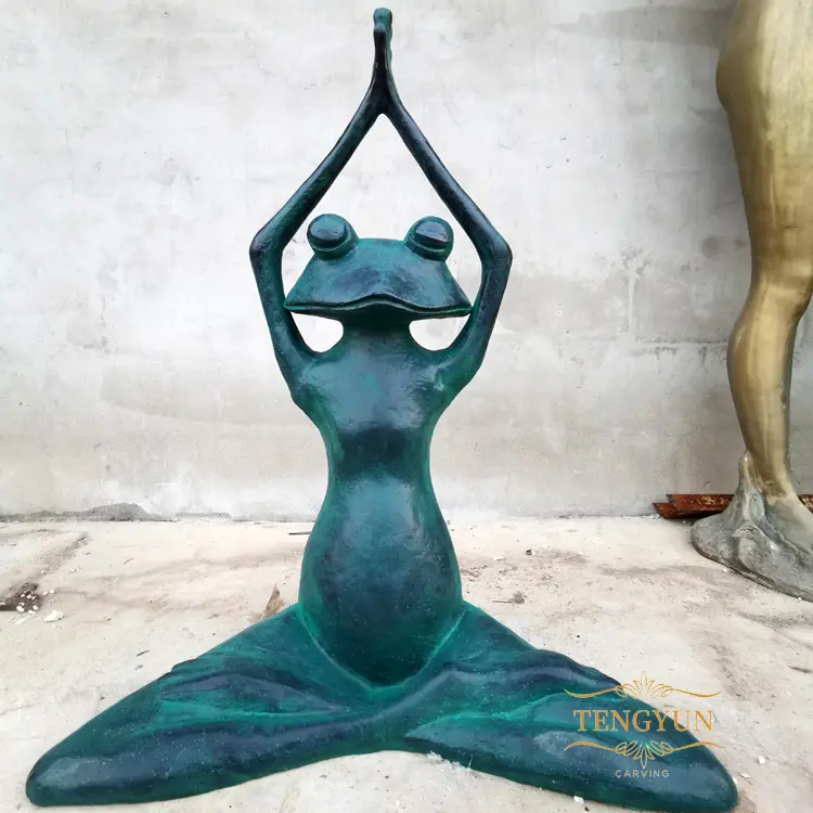 Decorative modern animal statue sitting yoga frog bronze garden sculpture (2)