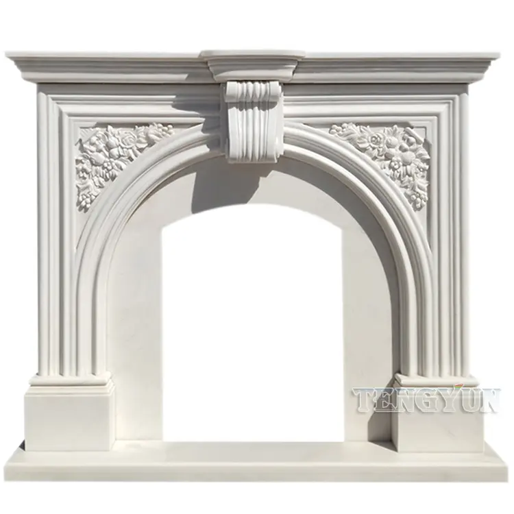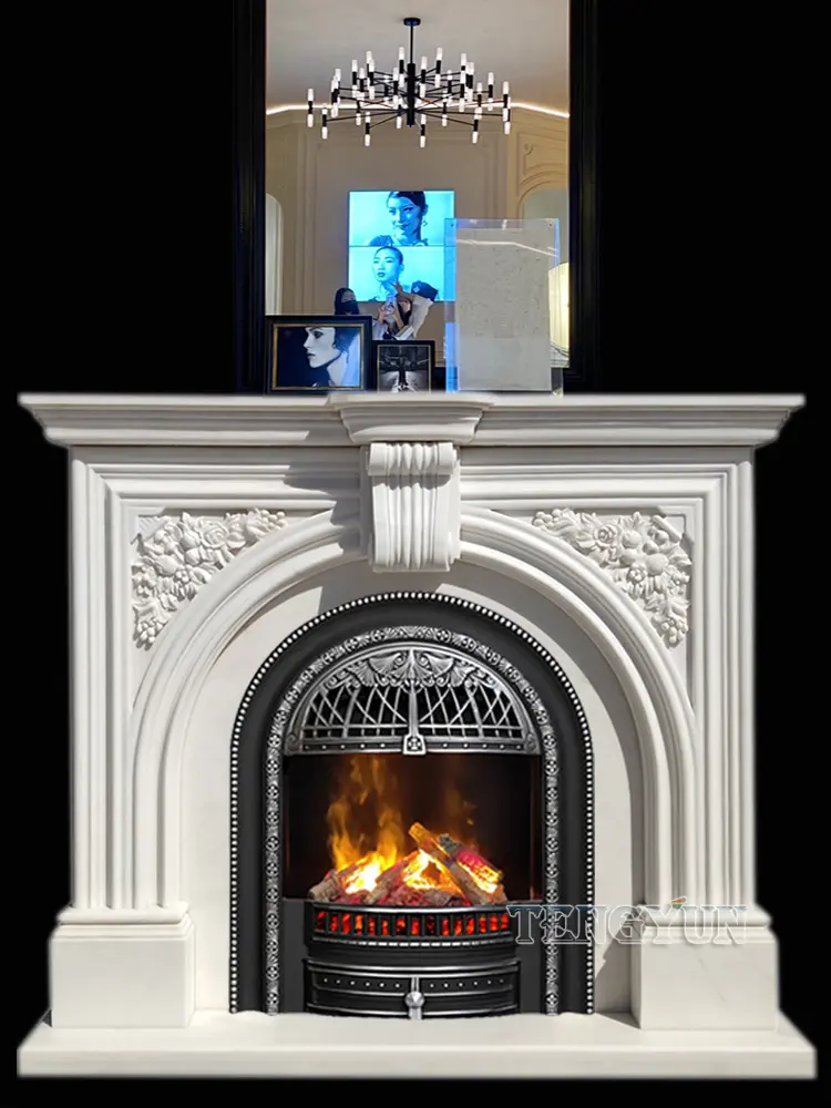 Marble Fireplace French Arch Stone Mantel Carved Retro Porch Living Room Background Wall Decorative Cabinet