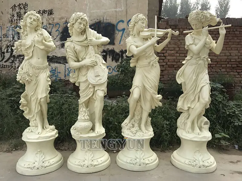 The set of fiberglass woman figure music statues can be made customized colors and pedestal. We can also customize sculpture based on your design.