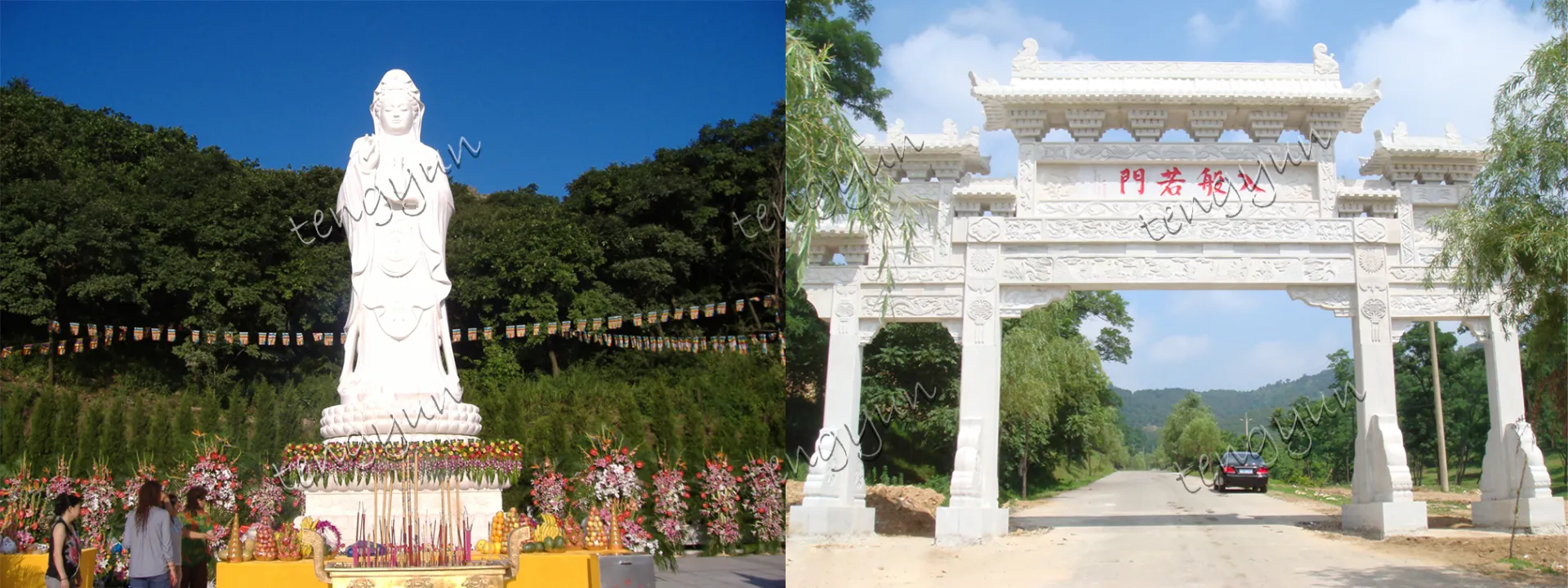 1) 9m Statue of Guanyin & Marble Gate Pavilion in Qingquan Temple, Dalian, China