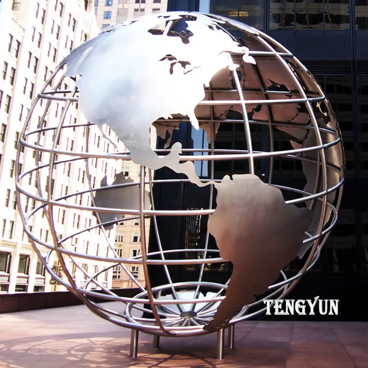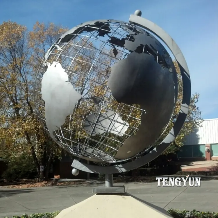 Decorative Metal Globe Sculpture Stainless Steel Outdoor Terrestrial Globe Statue For Sale