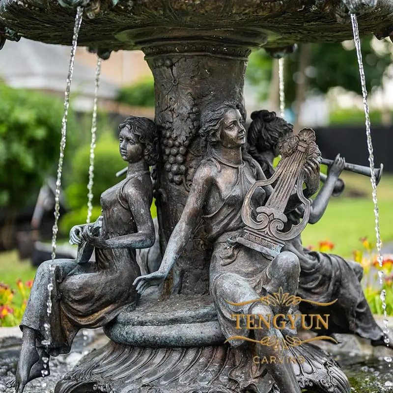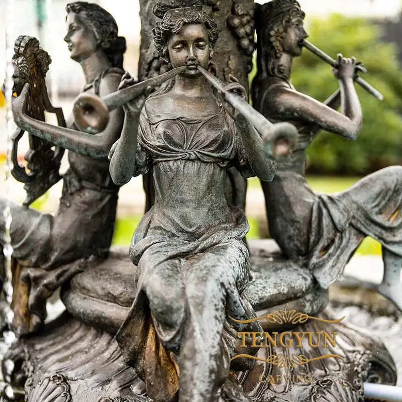 1. Material: The lady statue with instruments sculpture outdoor water fountain is bronze cast.