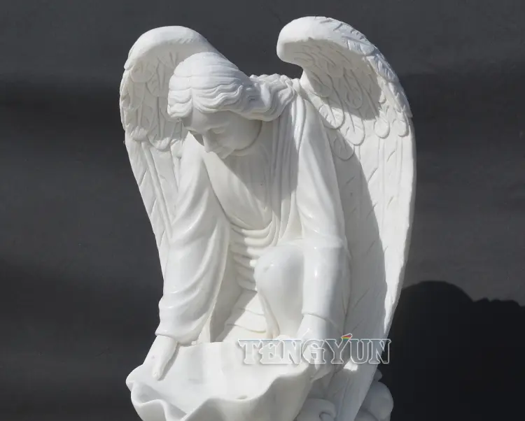 1. Material: The stone angel statue water fountain is natural white marble carved. We choose the best quality marble to carve it.