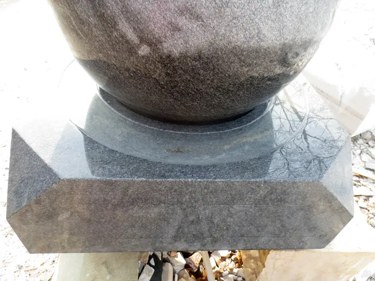 The sphere is made of natural black granite. The polished black surface is very bright. This kind of black granite is relatively economical.