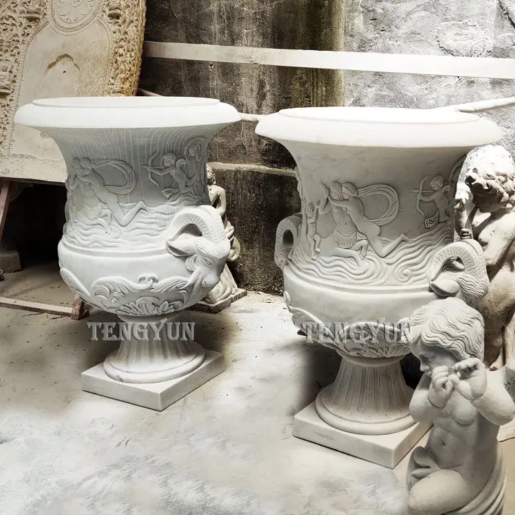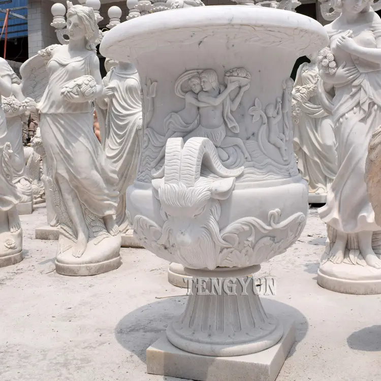 Our engravers carved them out with excellent engraving techniques to the greatest extent. Natural white marble veins makes your outdoor marble flowerpots unique in the world.