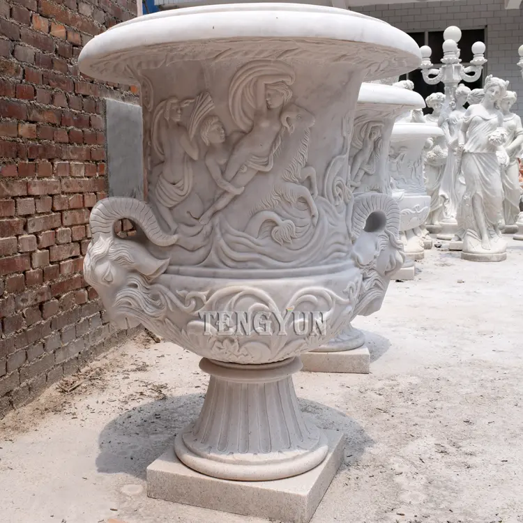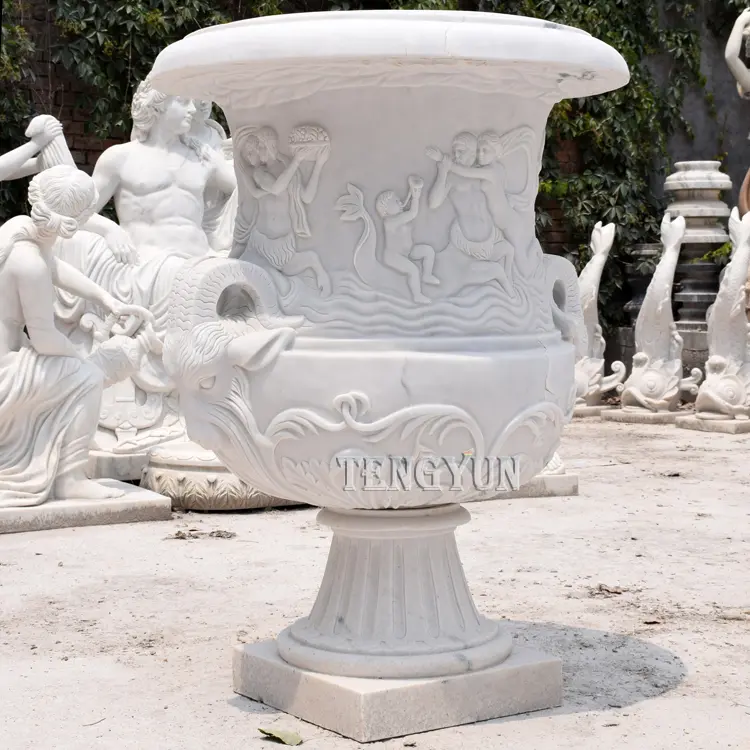 This is a very classic marble park flowerpot design, which shows ancient culture.