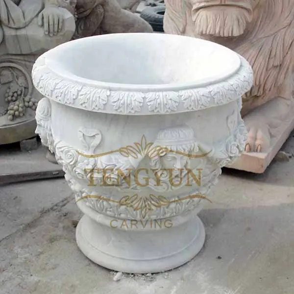 We can choose the right flower pot according to your requirement. If you want to install it in your house yard, you can choose a flower pot with figure carvings, it will make your yard looks beautiful. If you want to put it in a street, I think simple design is better.