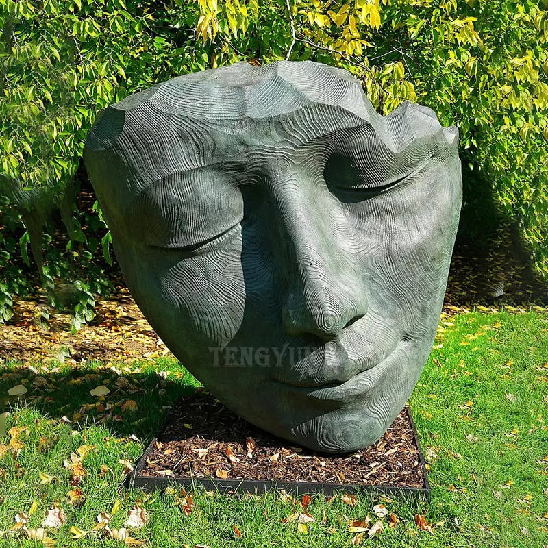 1. Material: The big size garden decorative human face sculpture is bronze cast.