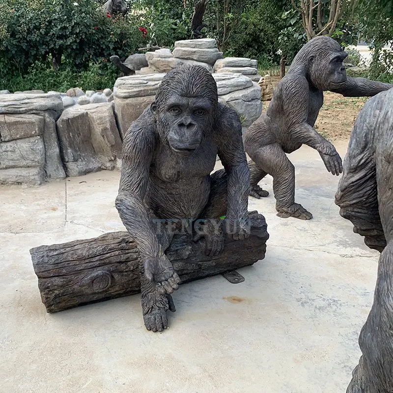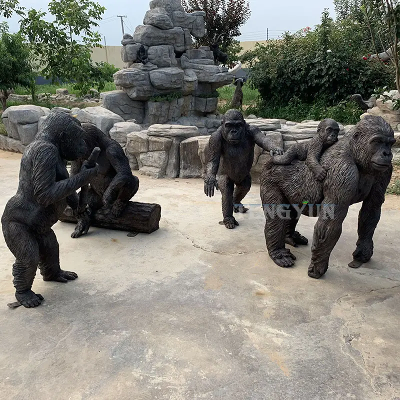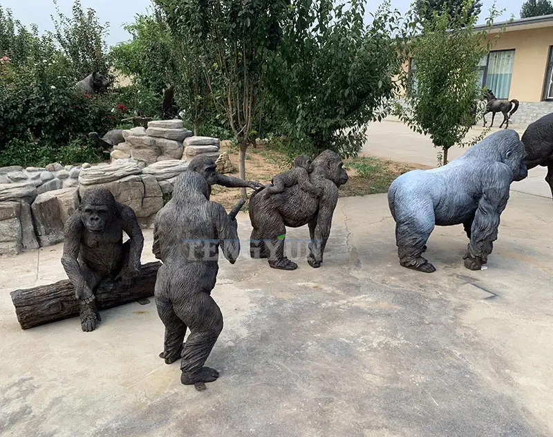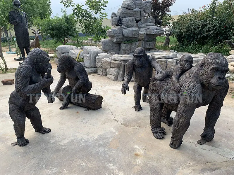 1. Material: The bronze gorilla sculptures are made of bronze.