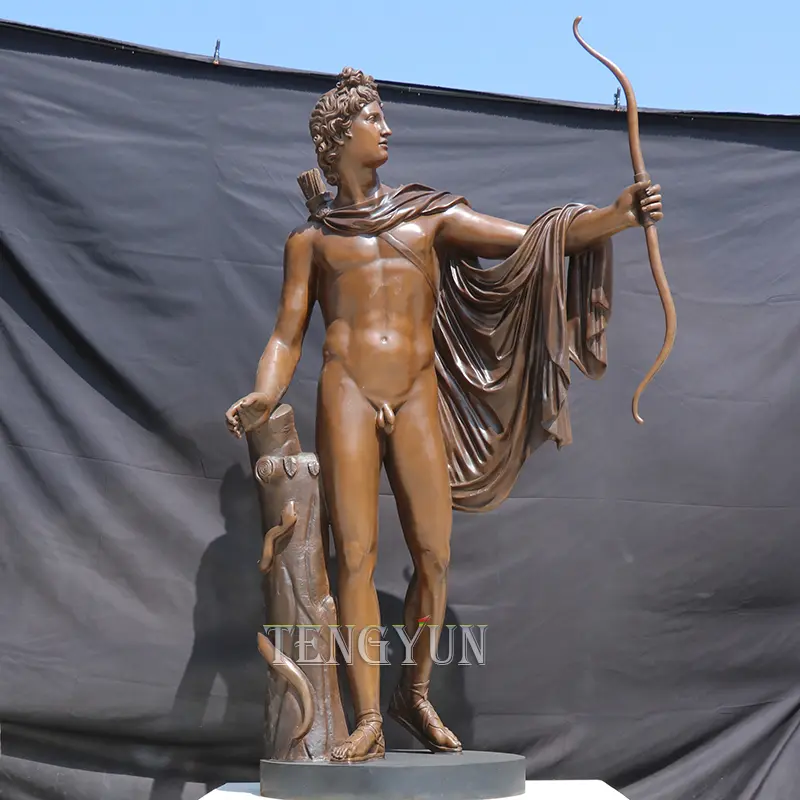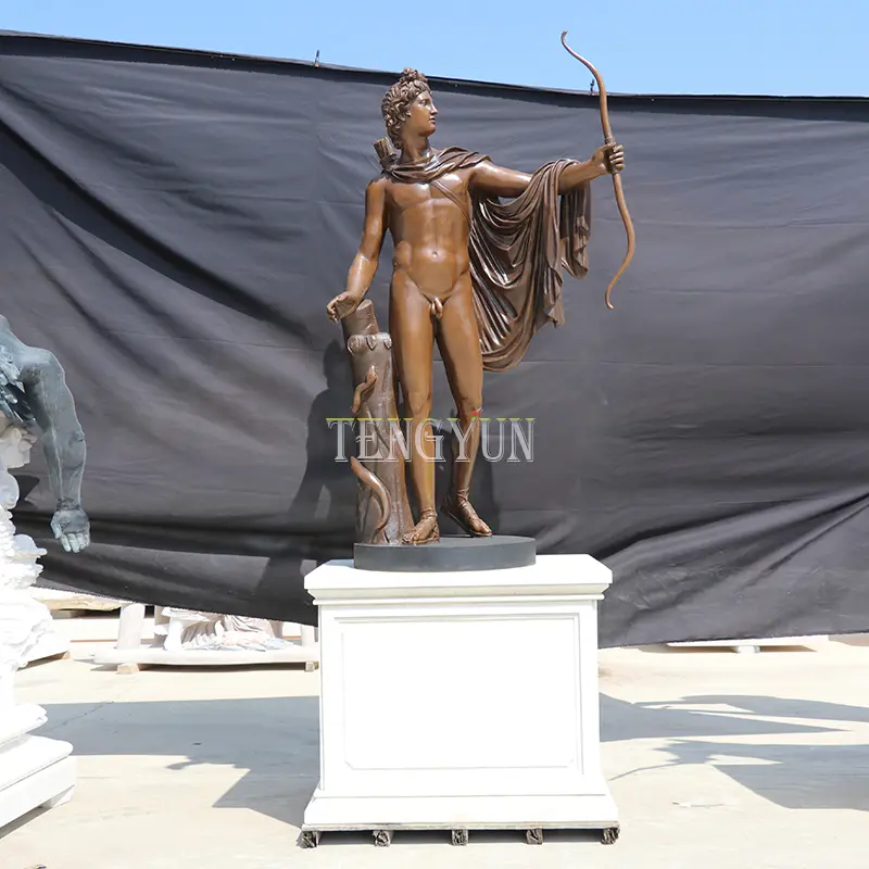 Greek Bronze Apollo Archer Statue Figure Antique Bronze Sculpture Italian Bow Arrow