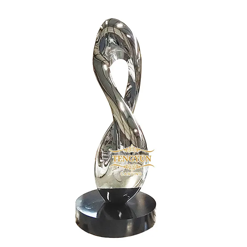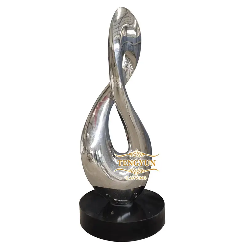 Abstract sculptures are often more modern and artistic. This surface is mirror polished. Of course, we can paint any color according to your preference. This abstract modern simple cheap sculpture is very suitable for home or art gallery decoration. Sizes can be made based on your need. Stainless steel has good corrosion resistance, heat resistance, high temperature resistance, high density, polishing without pores, and very good ductility. It is a commonly used sculpture material. The finished product is smooth and artistic.