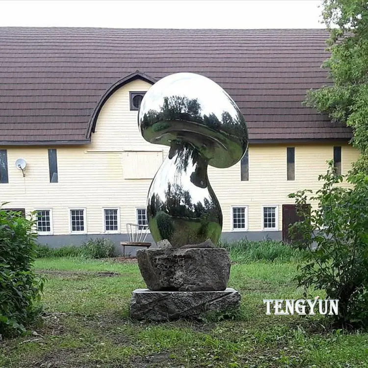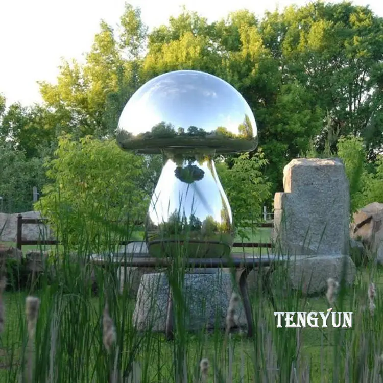 3. Surface: Mirror polished, Painted or Plated surface are available. This stainless steel mushroom sculpture is plated.