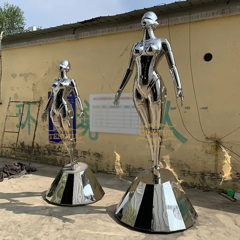 Figure statues are very popular. Usually, human sculptures are stone carved or bronze cast. While, this nude woman statue is stainless steel made, which is more artistic and modern. It's a creative and modern decorative sculpture.