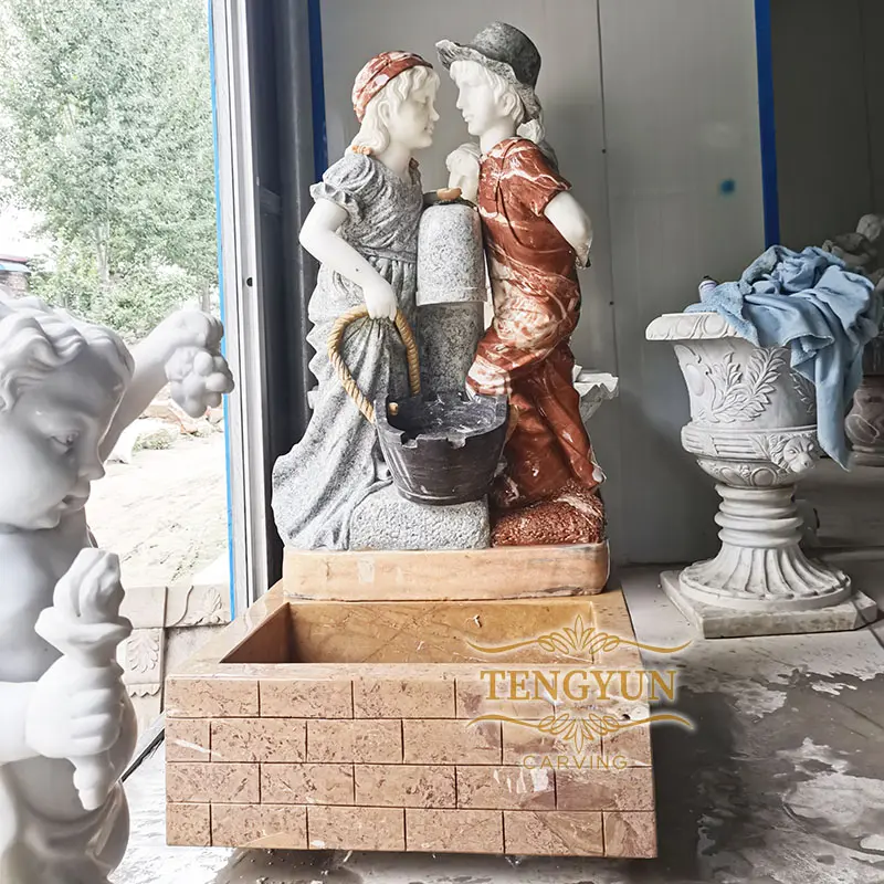 2. Size: The marble girl statue water fountain can be made in any size based on customers need, from very small size, life size to very large size. Usually fountain size is customized, the size suitable for the installation site is the most appropriate.