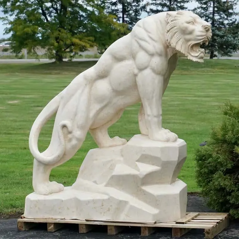 Marble Fierce Tiger Garden Wildlife Animal Sculpture
