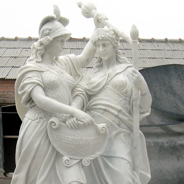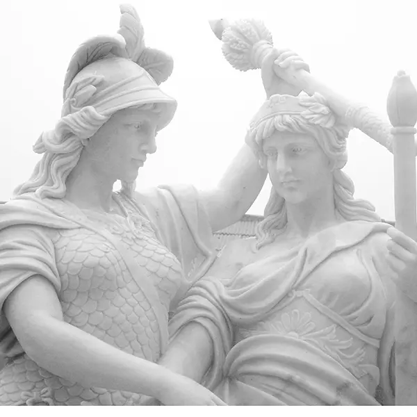In the marble warrior statue, the man holds a spear, and there is a sword in the woman's hand. There are different designs for the pedestals, we have more than 20 designs for your choice. To make the statue, we should make a 1:1 mold first, and then we carve the stone according to the mold, so we can get the perfect artwork finally. We have many already molds for many statues, such as marble figure statues, marble angel statues, and marble Christian statues.
