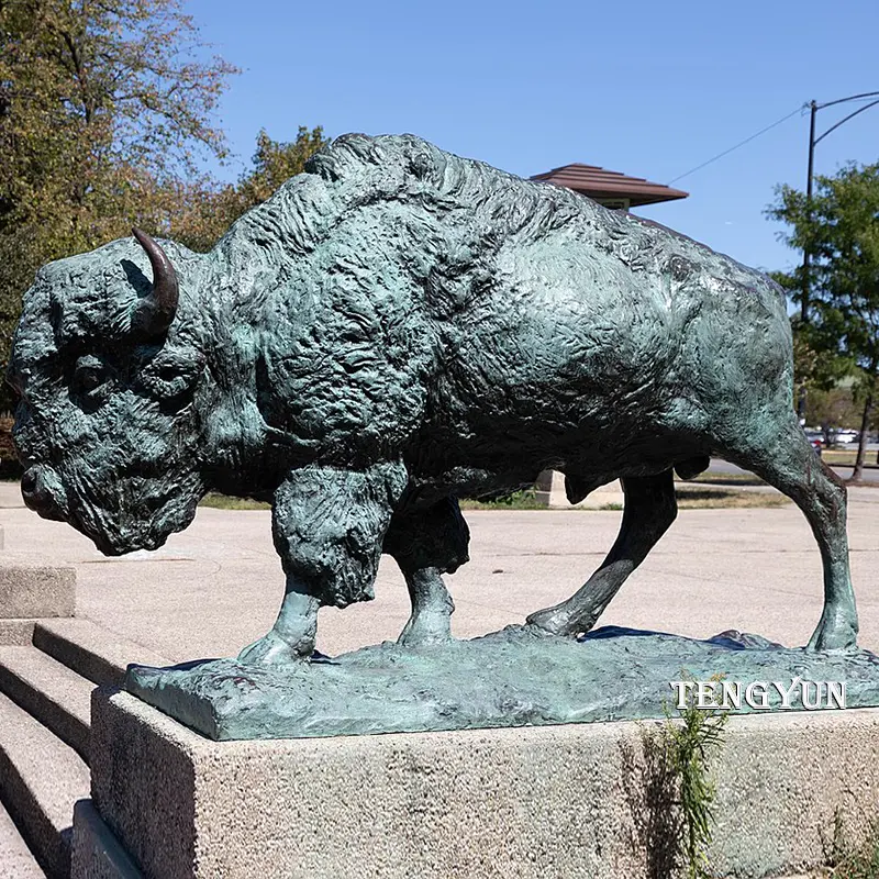 Material: The bronze bison statue is made from high-quality bronze, ensuring durability and resistance to weather elements, suitable for long-term outdoor use.
