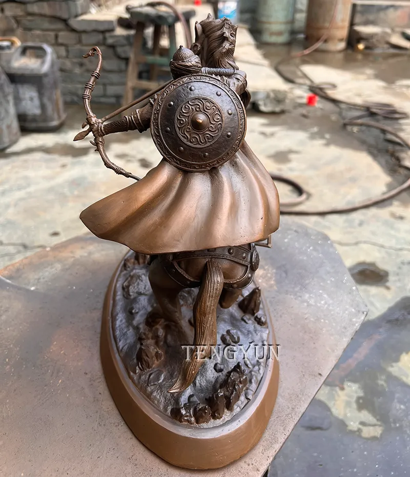 • Craftsmanship: Each piece is hand-cast by skilled artisans who pay close attention to every detail, from the warrior’s battle-ready stance to the horse’s powerful posture. The exquisite patina finish enhances the bronze's natural beauty, highlighting every fine detail.