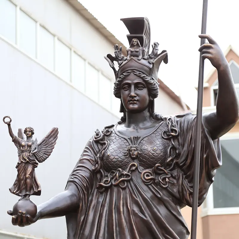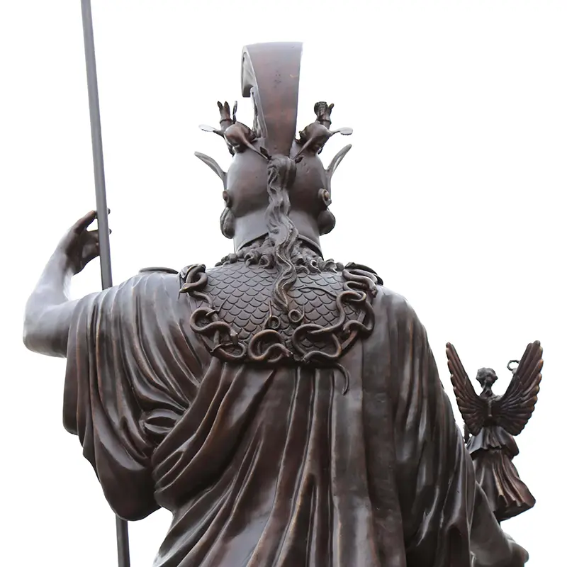 Her breastplate displays Medusa's head in relief, a tribute to her legendary aegis, with snake patterns coiling around for enhanced detail.