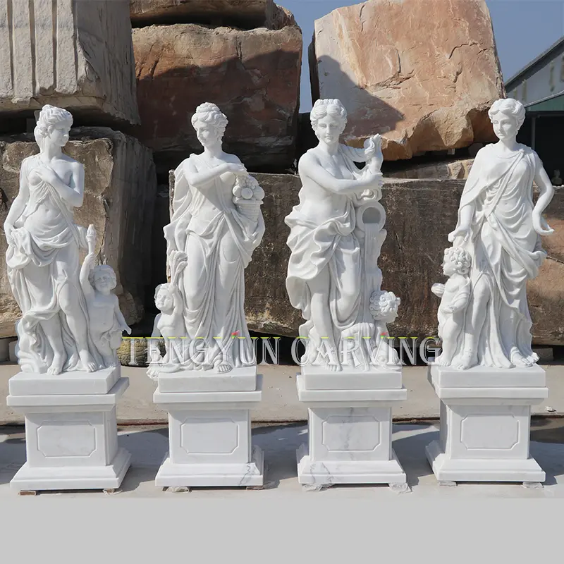 Large Size Garden Four Season Goddess Statues And Animal White Marble Sculpture For Outdoor Garden Decoration