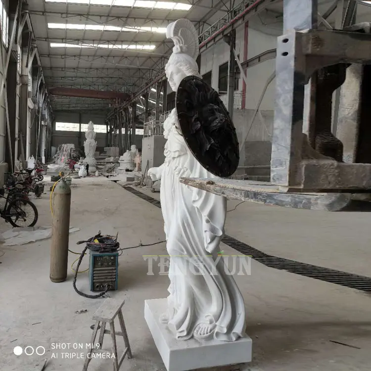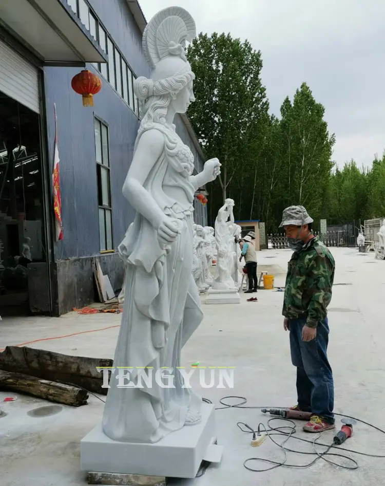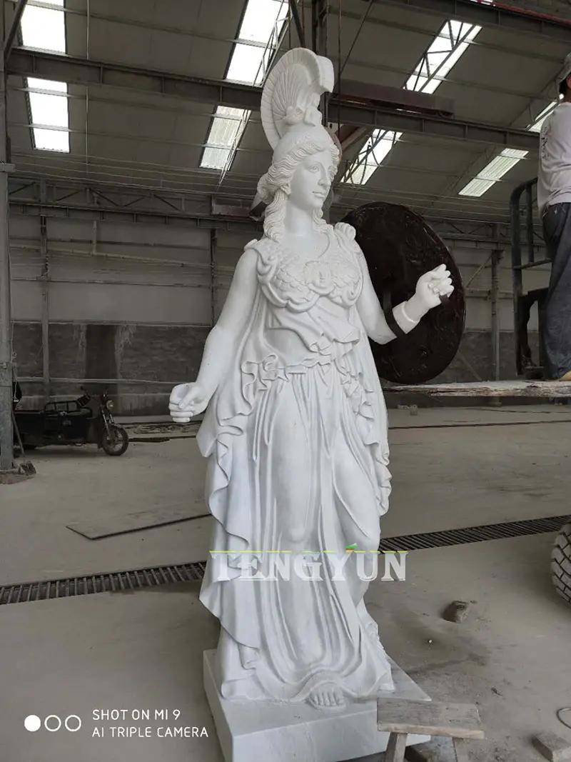 3. Technique: The stone Athena sculpture is 100% hand carved. Our engravers carved it out with excellent engraving techniques. The delicate faces and realistic clothes pleats give her life. Natural white marble veins make your shy standing stone woman statue unique in the world.