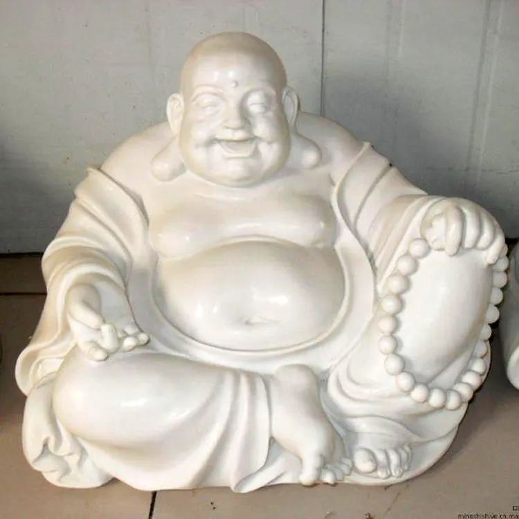 Large White Marble Carved Happy Buddha Statue – Natural Stone Laughing Maitreya Sculpture for Garden or Temple