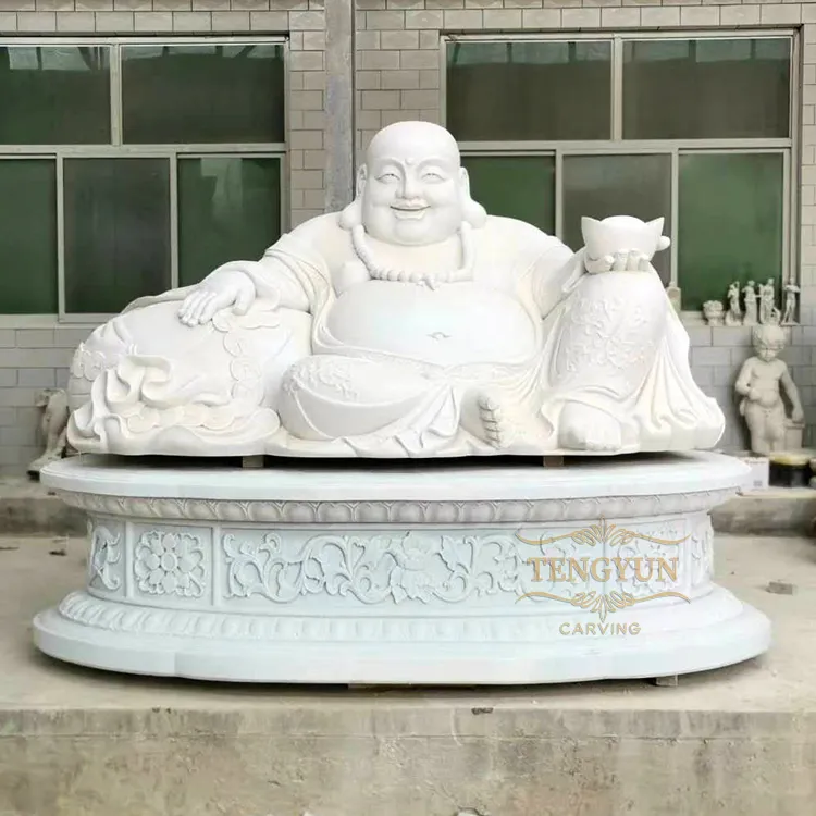 Large White Marble Laughing Buddha Sculpture – Outdoor Maitreya Stone Statue