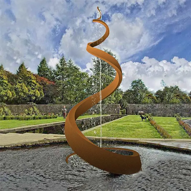 The design and construction of the rust steel modern fountain have considered the aesthetics and functionality of the fountain. fountain as an important landscape in gardens, can not only provide beautiful water scenery for people to enjoy, can also increase the negative ion content in the air through the action of spraying water and the effect of lighting, plays a role in purifying the air and regulating the air humidity and temperature. fountain has various control methods, including centralized control, fieldbus control and network bus control, to meet different needs and convenience of operation.