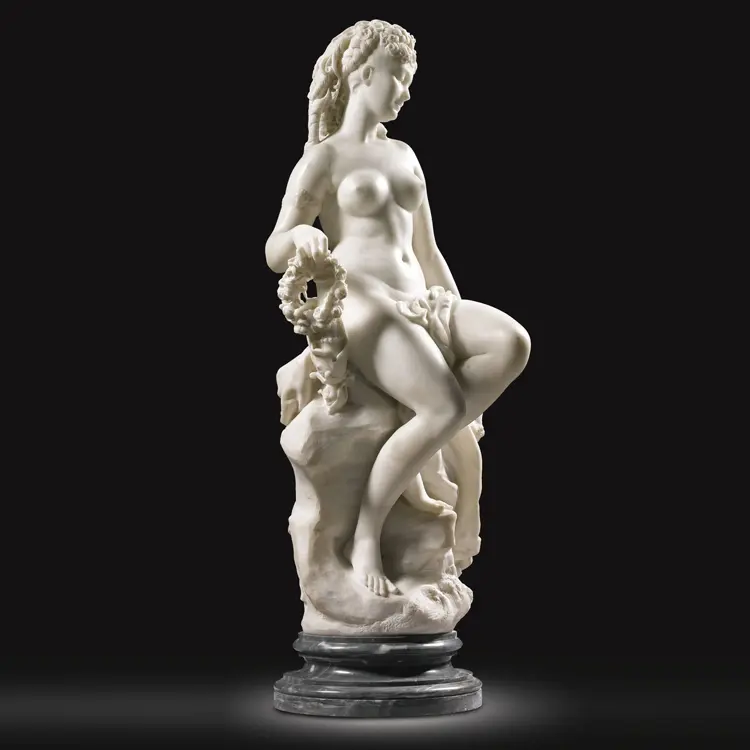 1. Material: The material of the nude female statue is natural white marble.