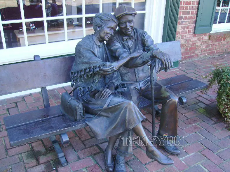 1. Material: The garden outdoor decorative sitting on bench man and wife sculptures are made of bronze.