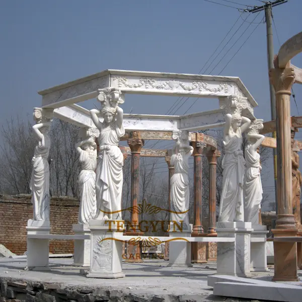 You can decide the size of the gazebo according to the place installed the gazebo. Normally the diameter of the gazebo can be 300cm, 350cm, 400cm, ect. The column of the gazebo can be 6 pieces or 8 pieces. You can choose granite or marble to make the gazebo.