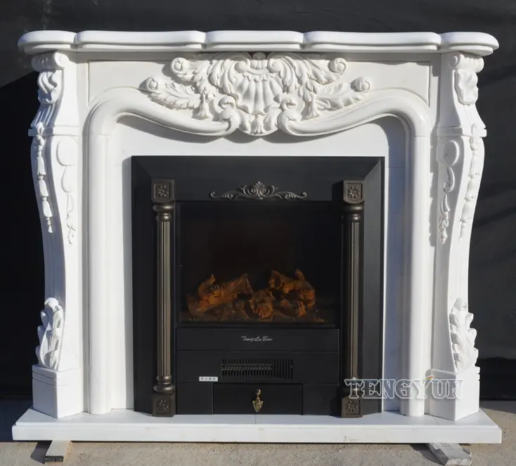 Marble Fireplace White Marble European-Style Carved Stone Mantel Marble Fireplace Surround
