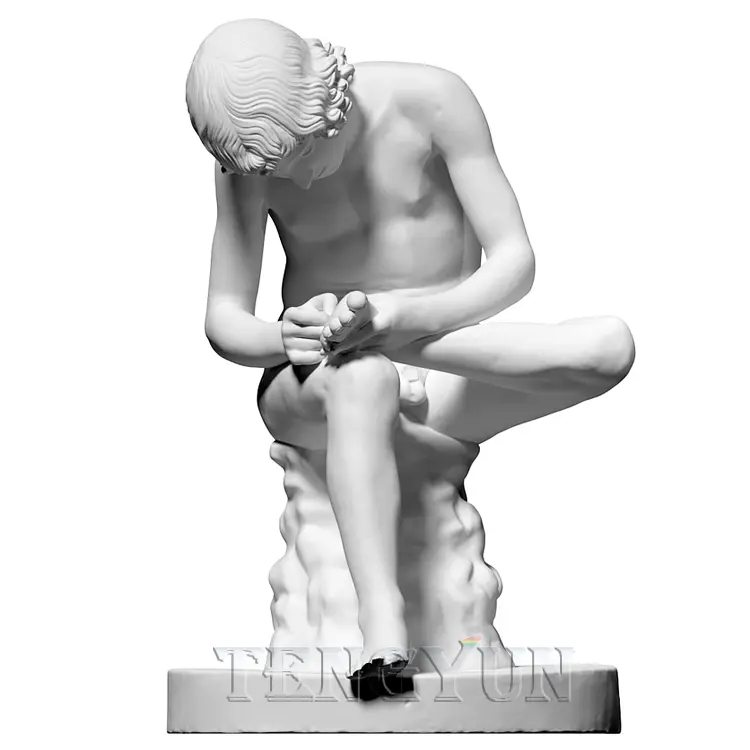 As 31 years sculpture manufacturer, we can also make it in fiberglass and bronze cast. In fact, the famous boy with thorn statue originally came out in bronze. If you want fiberglass or bronze nude sitting boy pulling thorn from his foot marble statue, please contact us for information and price.