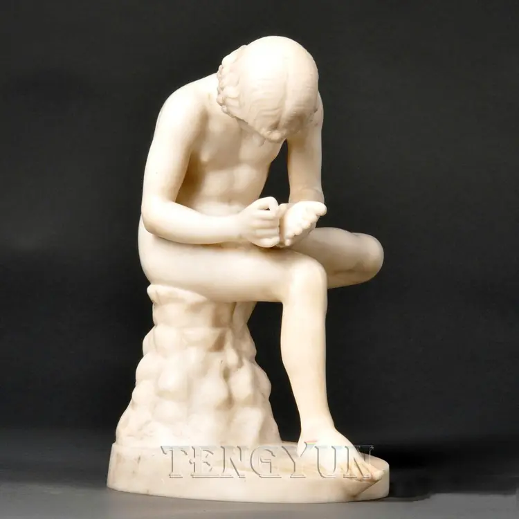 The white marble material perfectly presents the holiness and faithful of the famous boy with thorn marble sculpture.