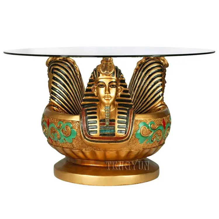 1. Material: The sphinx statue is bronze cast, and the table top is stalinite glass.