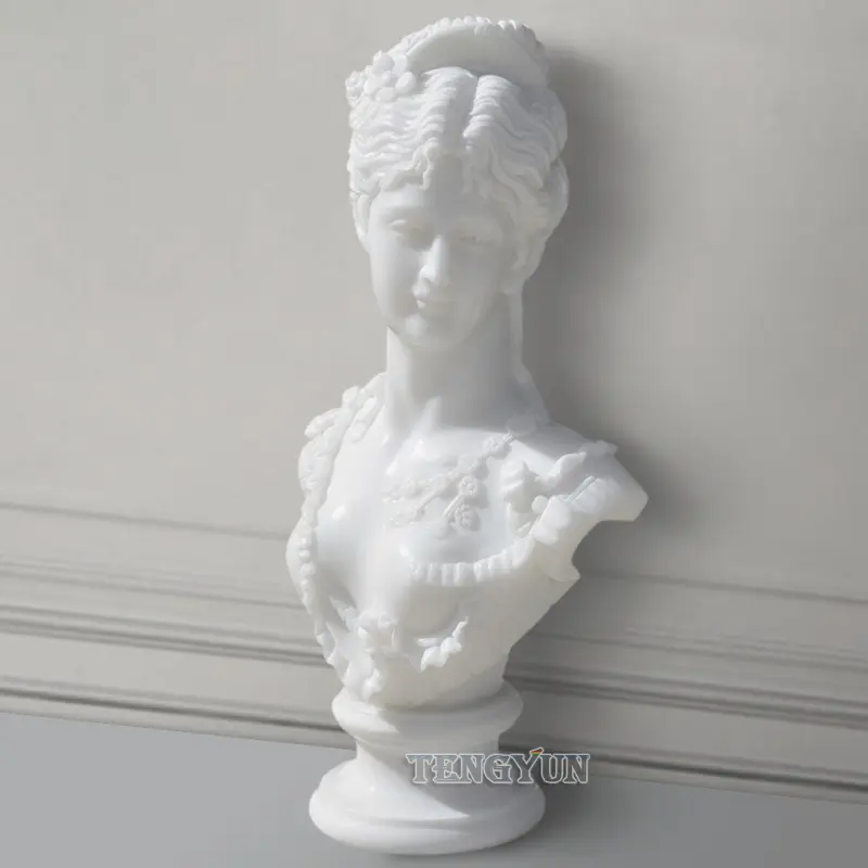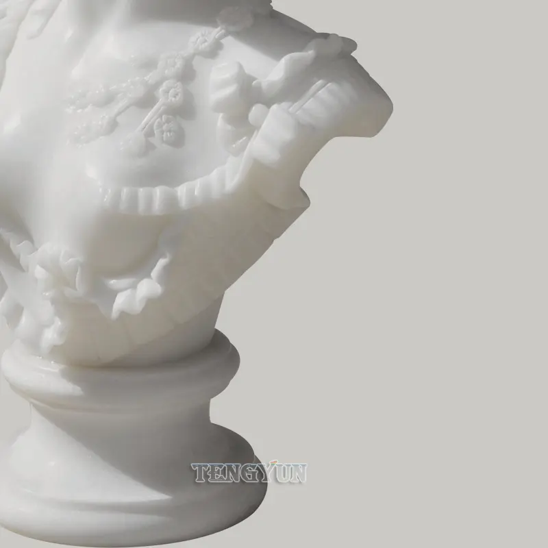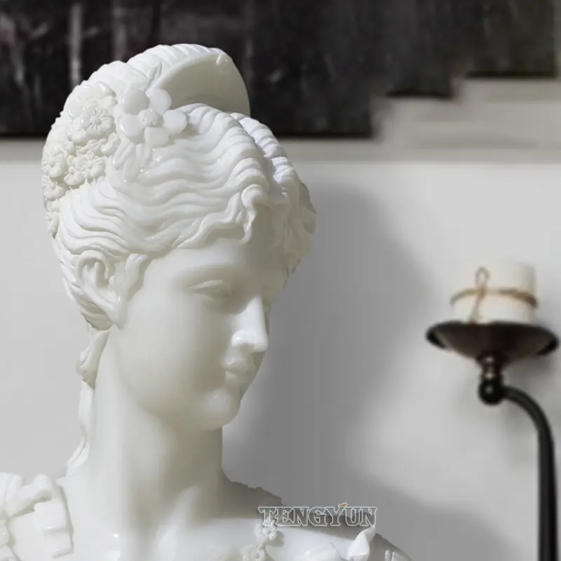 1. Material: The female bust statue is natural white marble. We can carve it with kinds of natural marble based on your need, different marble, different colors.