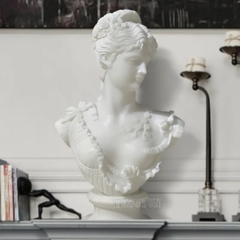 Natural White Marble Female Bust Statue Stone Woman Head Sculpture for Indoor Decoration