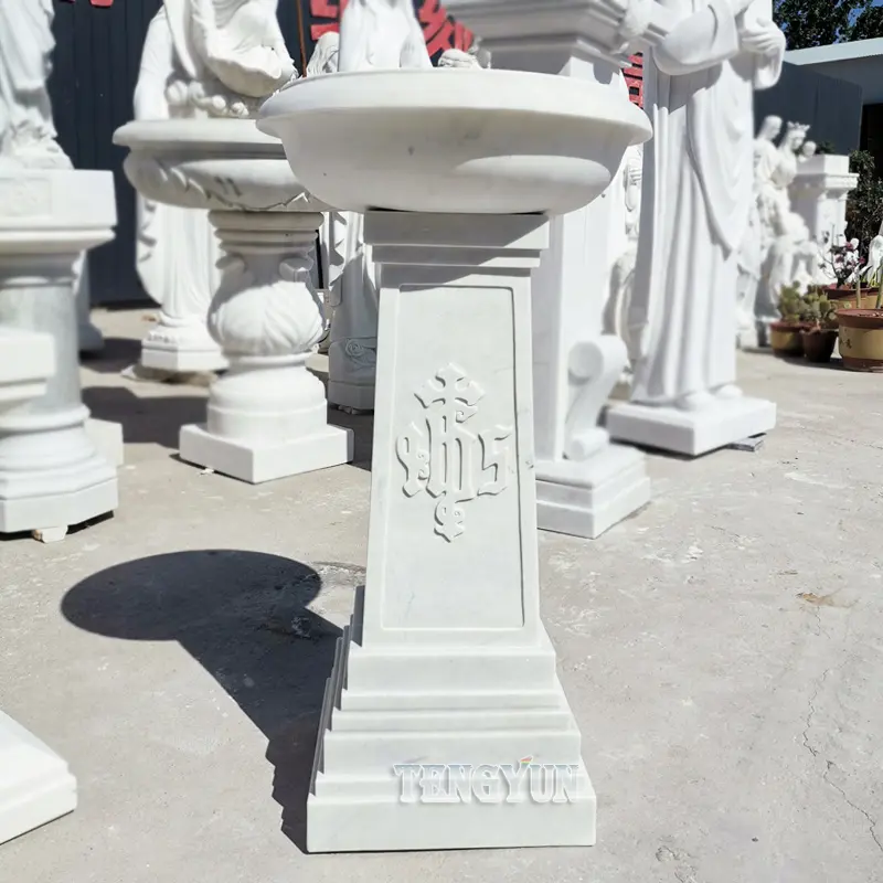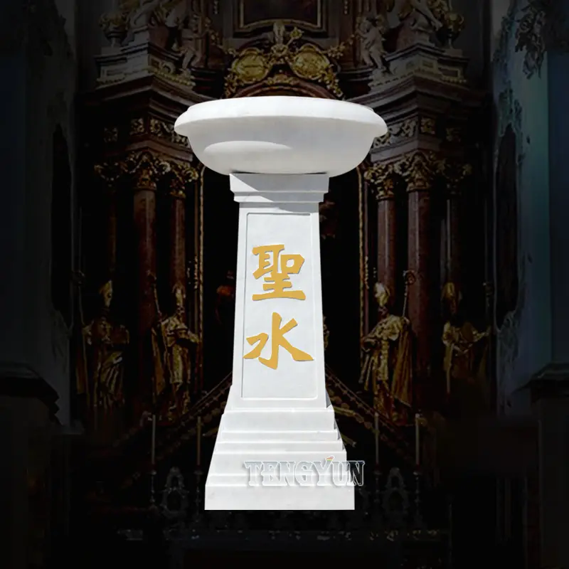 Stone Carving Holy Water Basin Marble Baptismal Factory Direct Holy Pool Church Religious Sculpture