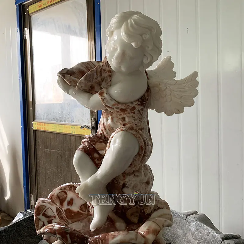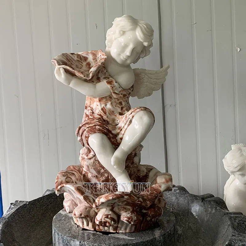 Outdoor garden decorative natural marble hand carved small angel statue cherub water fountain