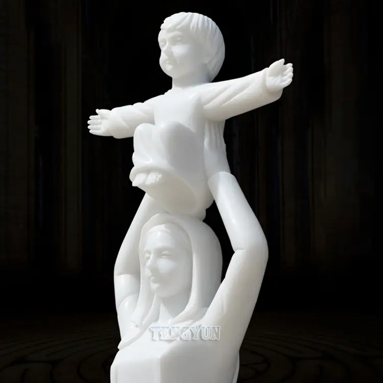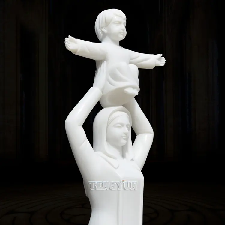 3. Technique: The marble church decorative statues holy family stone carvings marble mother holy Mary statue holding child statue is 100% hand carved. Our engravers carved our lady of Virgin Mary statue out with excellent engraving techniques. Natural white marble veins make your statue unique in the world.