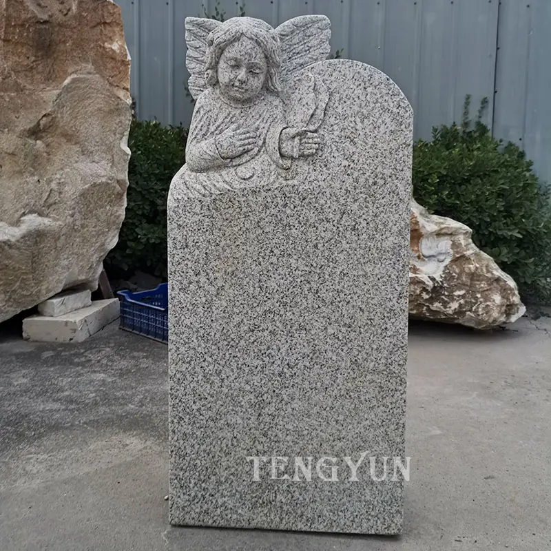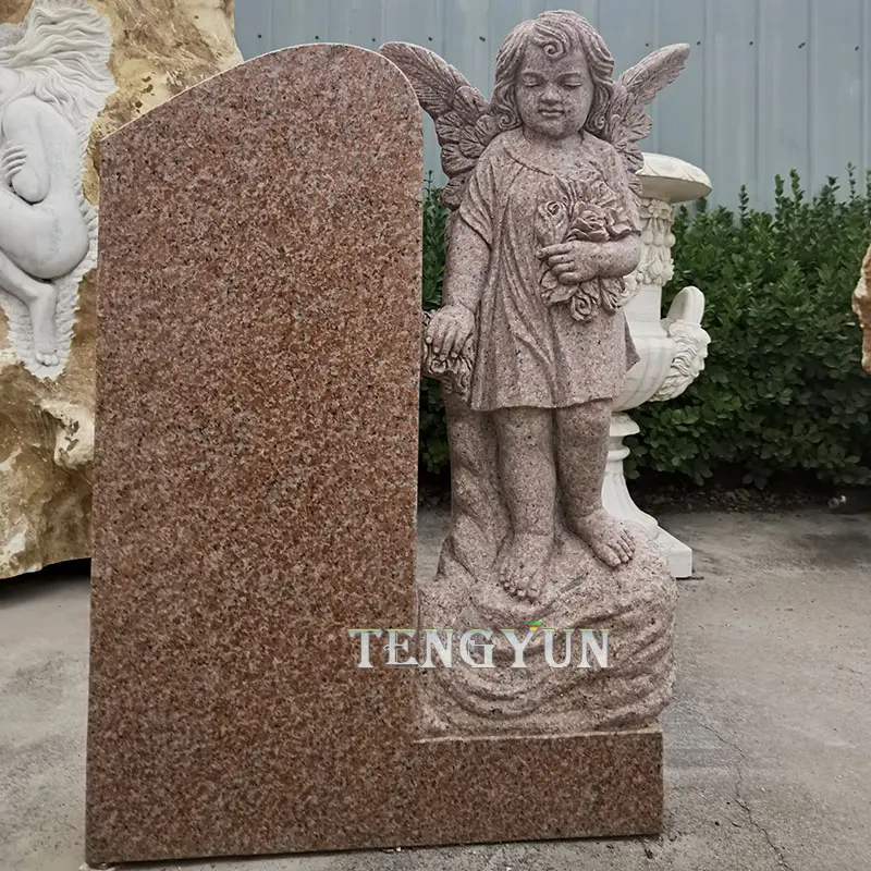 >>>The natural granite cherub sculpture gravestone is 100% hand carved.