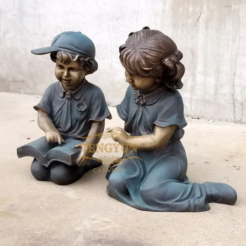 2. Size: The bronze little boy and girl reading a book sculpture in the garden is life size. We can also make it in any size as your request, from small size, life size to very large size. We are 31 years manufacturer, we can meet all the needs of customers for sculpture.