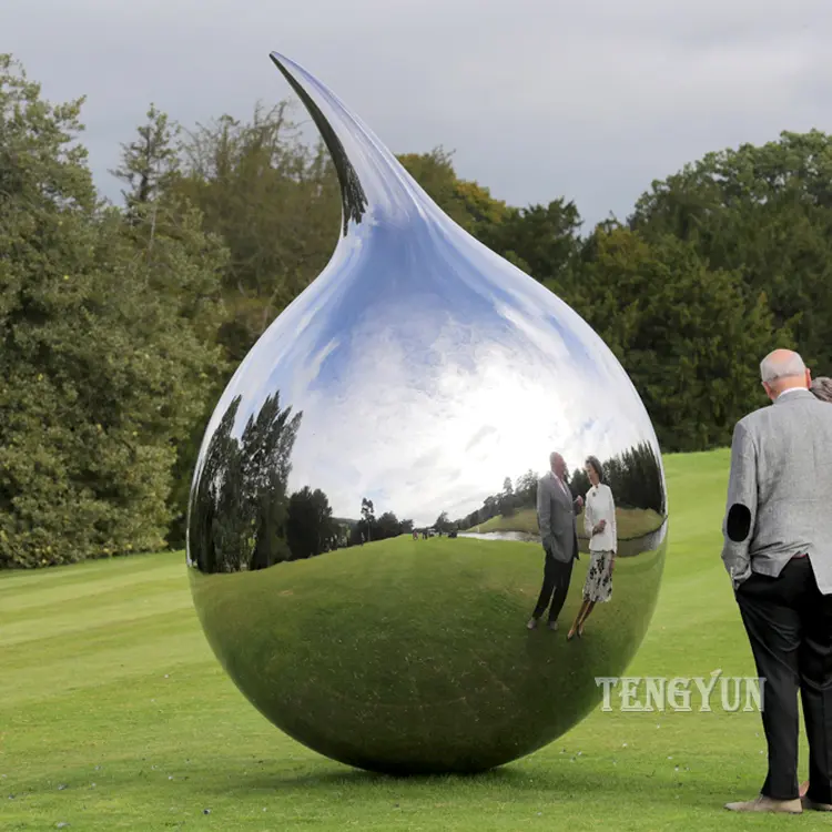 Lawn outdoor mirror polished large stainless steel elliptical sculpture (2)