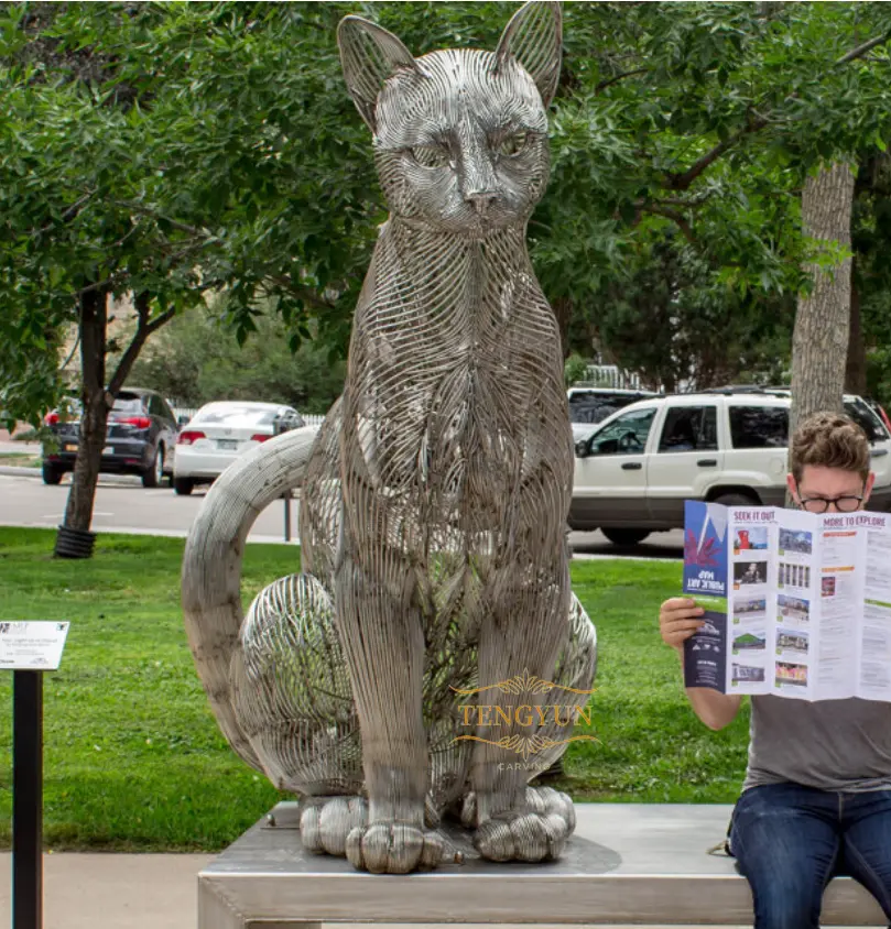 This metal animal statue stainless steel cat sculpture, different from the ordinary stainless steel sculptures, It's made from stainless steel wires. This kind of sculptures are more and more populars these years.