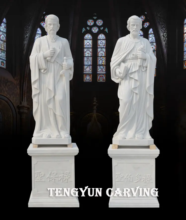 1. Material: The material of St. Paul and St. Peter are carved in natural white marble. We use the best quality stone to carve statues.