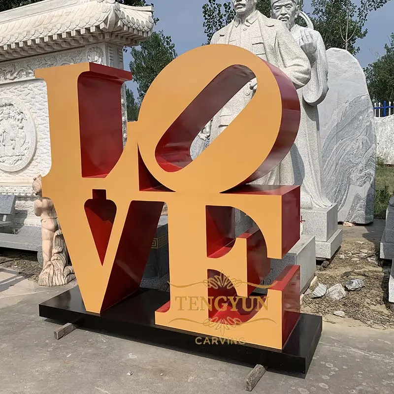 Outdoor Metal Orange Color LOVE Word Art Sculpture Stainless Steel Letters Modern Sculptures