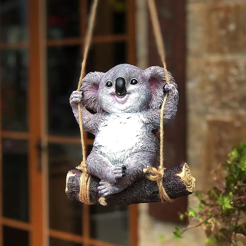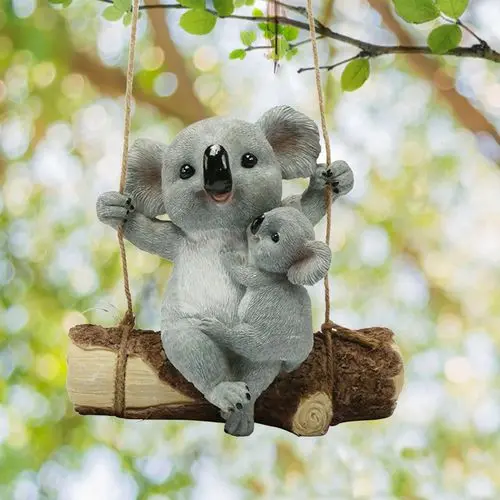 Resin Koala Bear Hanging On A Tree Garden Statue Swing Figurine Fiberglass Sculpture Landscape Ornament